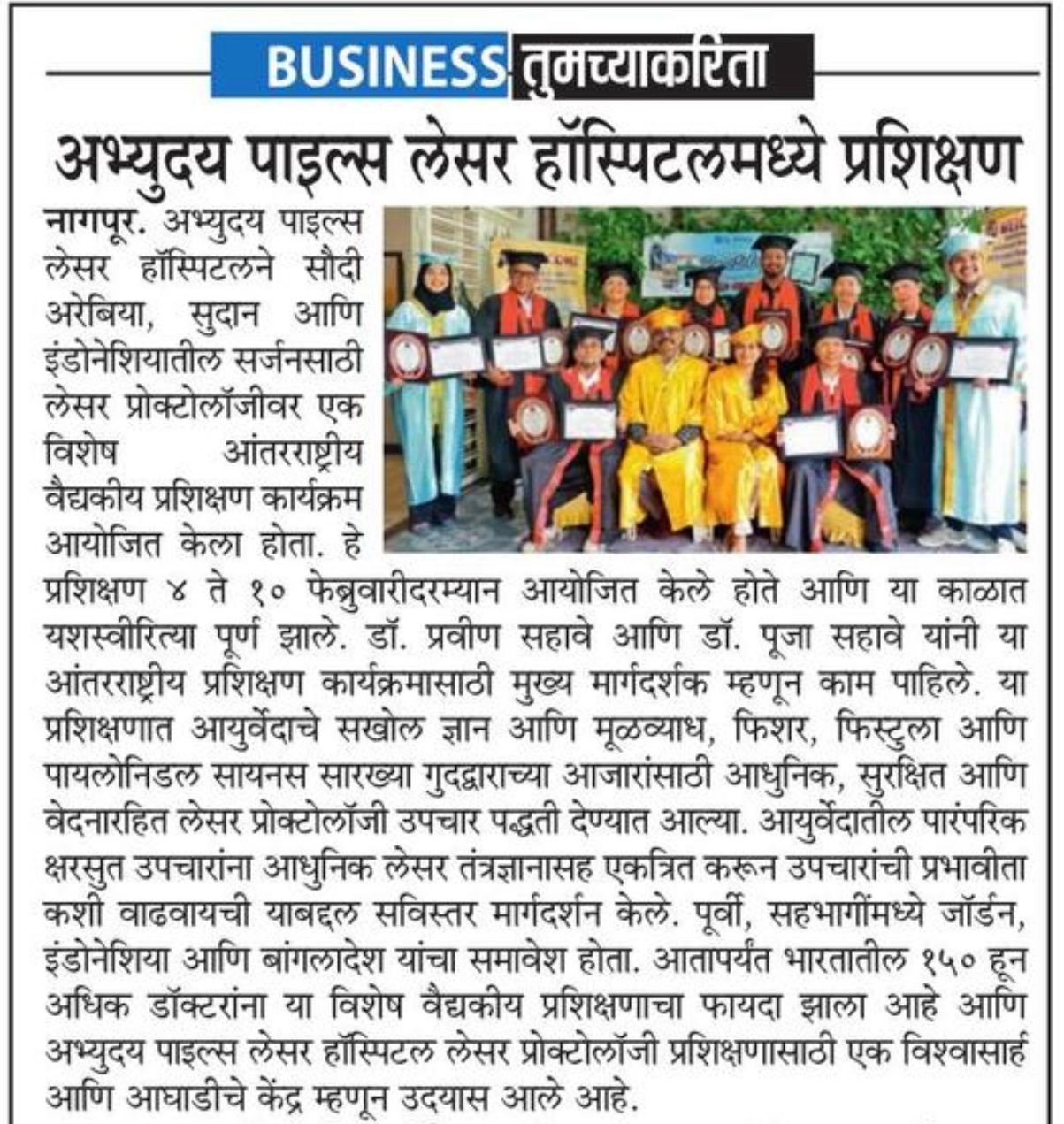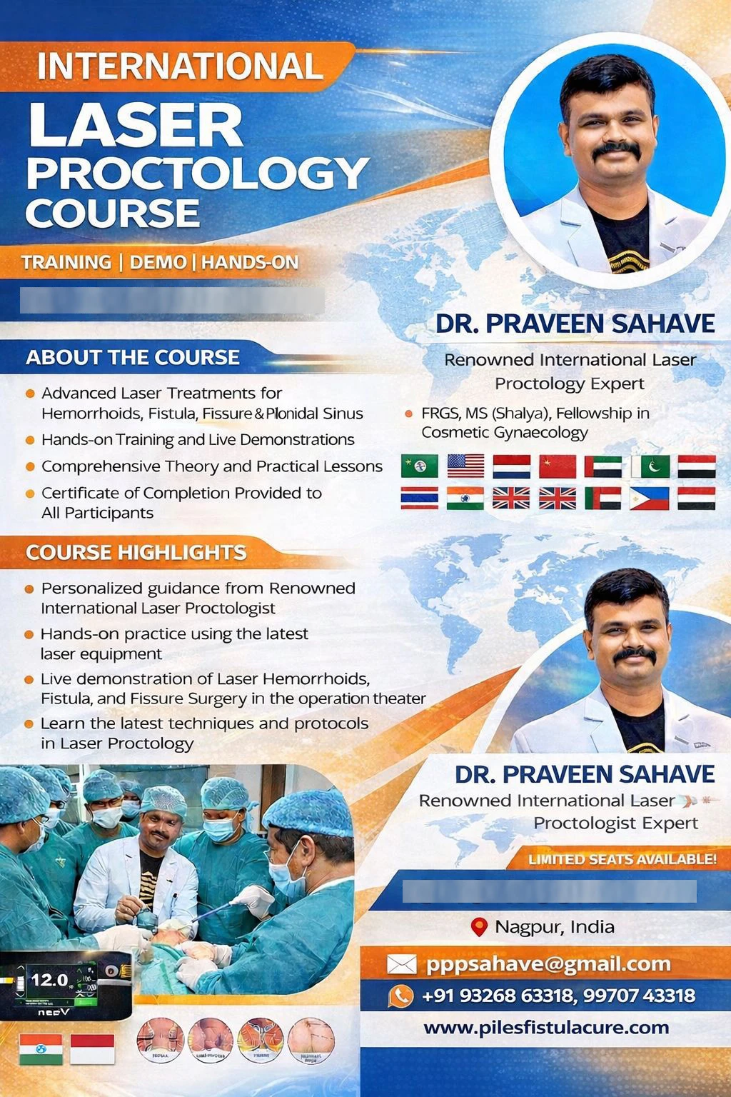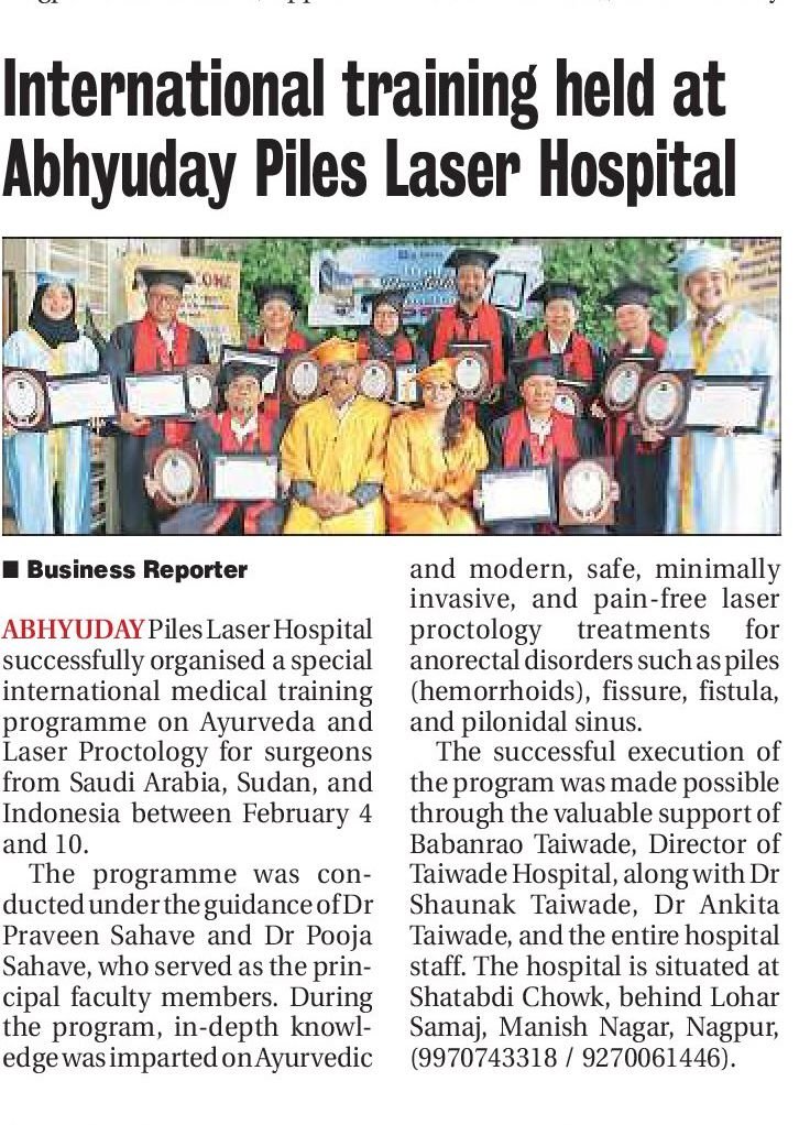 Abhyudaya Hospital, Nagpur conduct a regular hands-on workshop for best Laser Treatment in Proctology for Piles, Fissure, Fistula and Pilonidal in India and abroad.